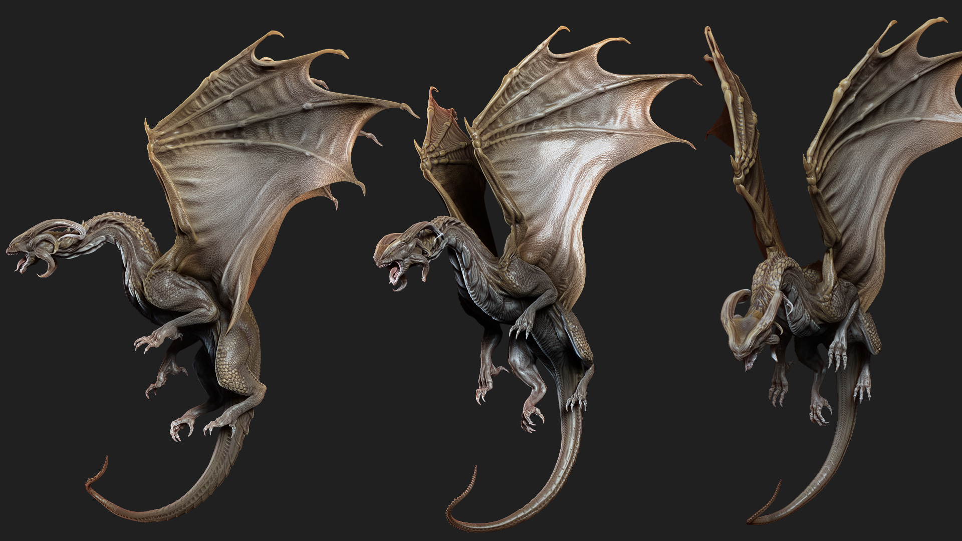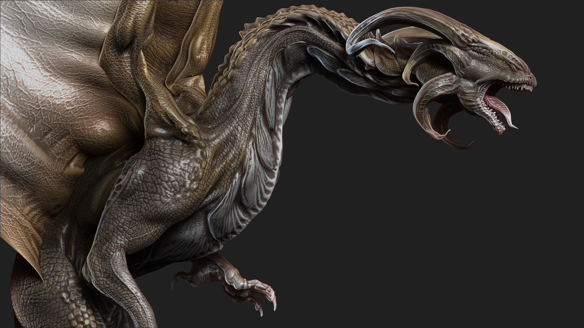 Zbrush Sculpt. The theme of the dragon is archetypal, and it remains one of the quintessential forms for creature design. This model has evolved over time, and is continuously updated.